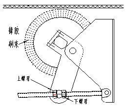 2.再将下部的螺母顺时针旋转,推动支撑臂连杆,使清扫刷辊上升,确保刷毛与皮带相接触,刷毛与皮带的接触深度为0***0.5mm为宜。接触深度不宜过大,否则,将缩短刷毛的使用寿命。